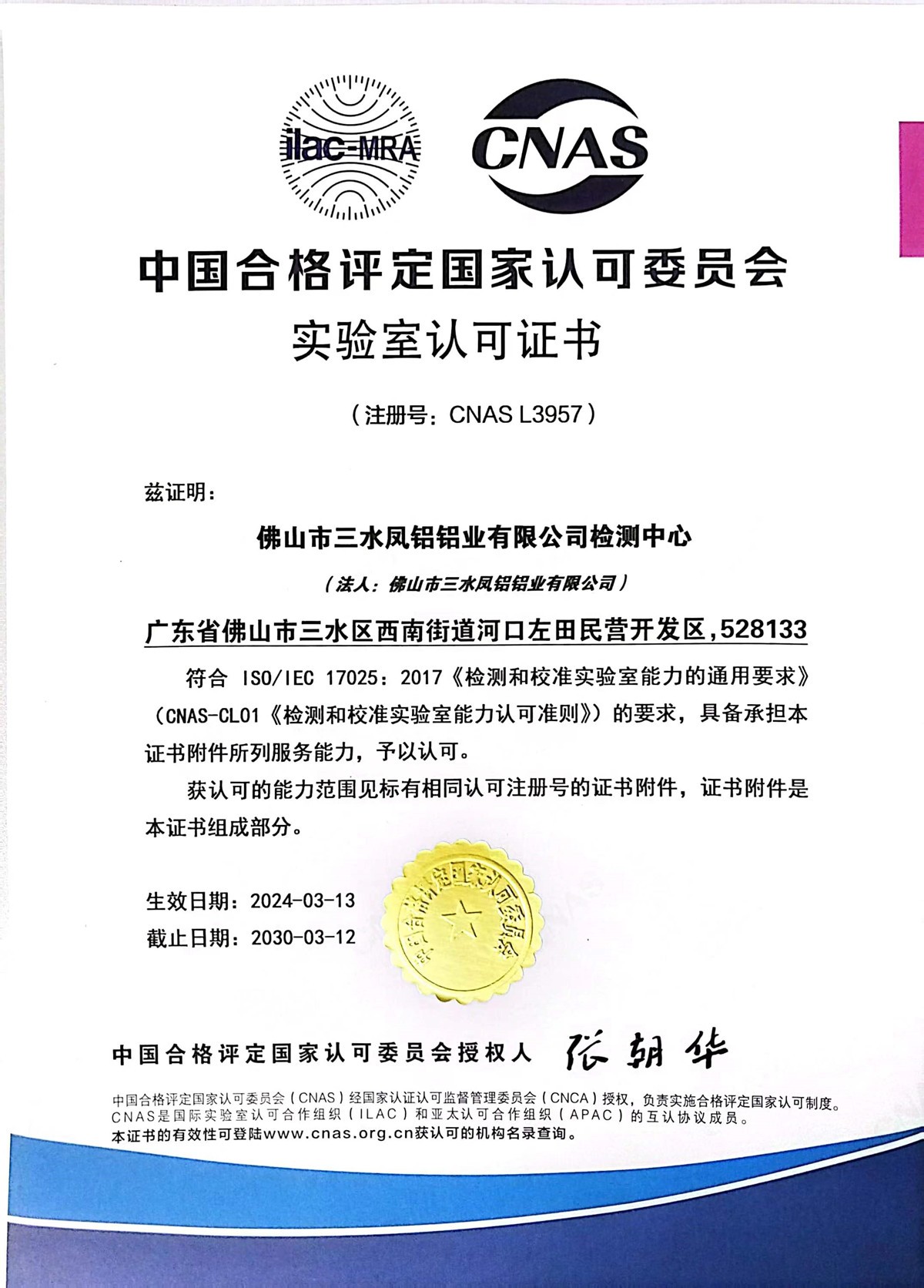 國家認(rèn)可實驗室證書